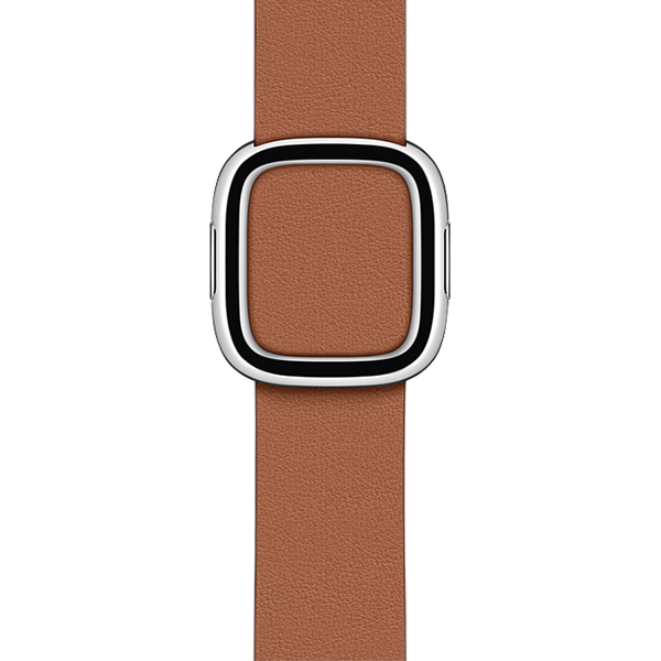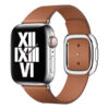 إبزيم عصري لساعة Apple Watch باللون البني Saddle. مناسب للساعات بمقاسات 38 مم، 40 مم، و41 مم. إبزيم عالي الجودة وسهل الاستخدام، يضفي لمسة أنيقة وعصرية على مظهر الساعة.