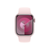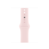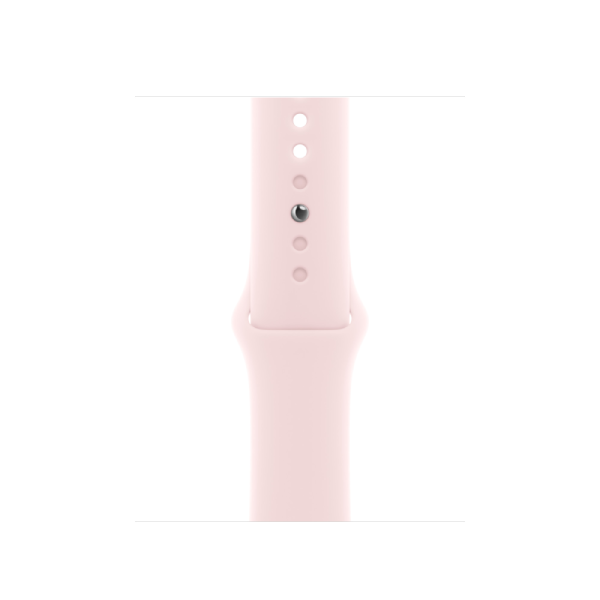 رباط رياضي من Apple Watch بحجم 41 ملم باللون الوردي الفاتح، بمقاس M/L. مصنوع من مادة الفلوروالاستومر عالية الجودة، مما يجعله متينًا ومريحًا للاستخدام اليومي.