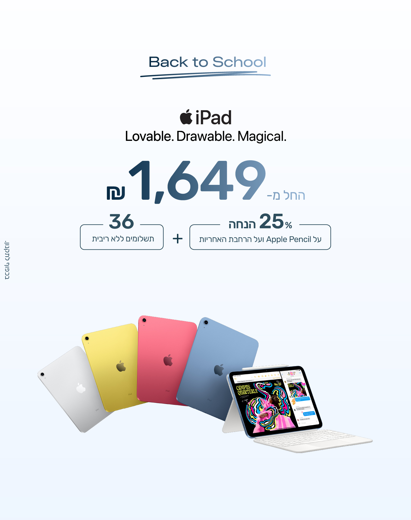 החל מ- ₪ 1,649 או ₪ 46 לחודש ב- 36 תשלומים
