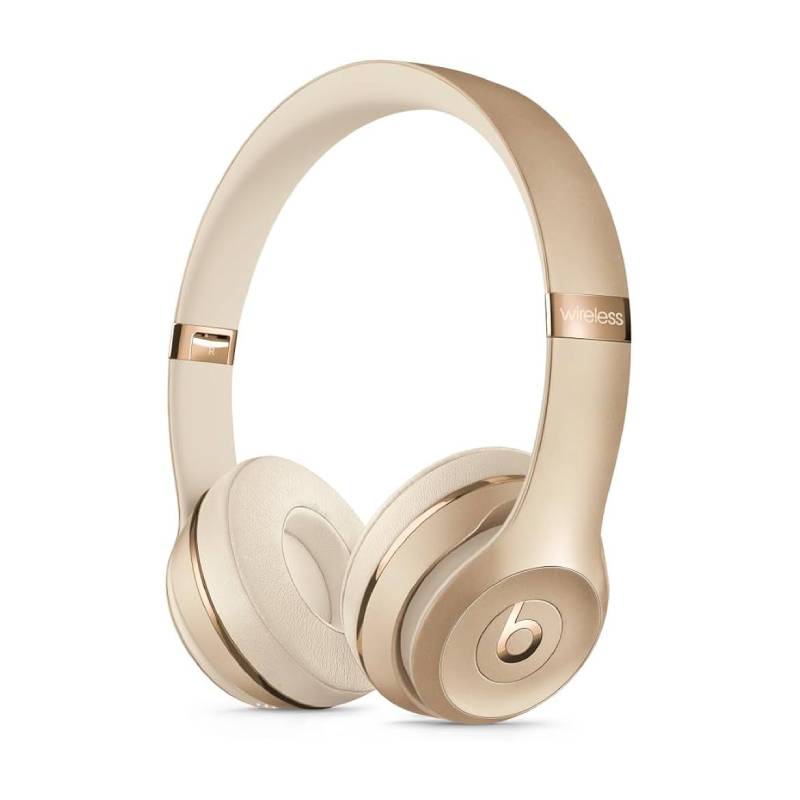 אוזניות אלחוטיות Beats Solo3 של אפל בצבע זהב. מגיעות עם מיקרופון פנימי ומתאימות לשימוש עם מגוון רחב של מכשירים. מאפשרות ניהול שיחות והאזנה למוזיקה באופן אלחוטי באמצעות Bluetooth. חיי סוללה ארוכים עם טעינה מהירה באמצעות Micro-USB.