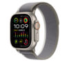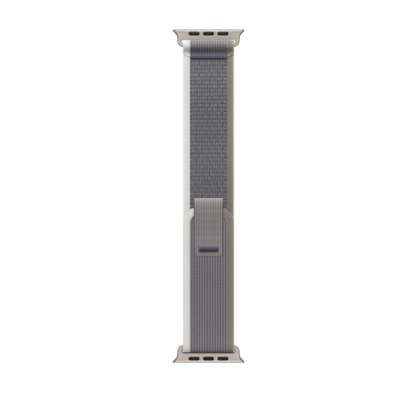 רצועת Trail-bandje של אפל בצבעים ירוק ואפור, גודל M/L. מתאימה לשעונים חכמים של אפל בגודל 44mm, 45mm ו-49mm. שילוב של ניילון ממוחזר ופוליאסטר, חיזוקים מטיטניום וספנדקס לנוחות וגמישות מירבית.