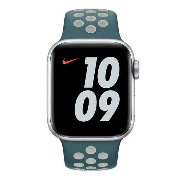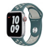 רצועת ספורט של Apple Watch Nike במידה 38/40/41mm בצבע Hasta/Light Silver. מוצר איכותי מבית אפל, מותאם במיוחד לפעילות ספורטיבית ומציע נוחות ועמידות.